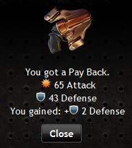 Once again they have changed up the specialty item you can purchase from your NY properties. It's out of the chop shop and back to the weapons depot this time with the Pay Back! It's been there once before but it has been a while. It's a decent weapon and should improve your stats a bit. Of course it requires some specialty parts to collect it and it's back to the ammunition. You need 10 to make the first one and 5 for each one there after. And thankfully there's no limit on these the ammunition this time. So start sending and collecting and soon you'll be getting some Pay Back!
